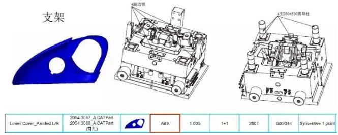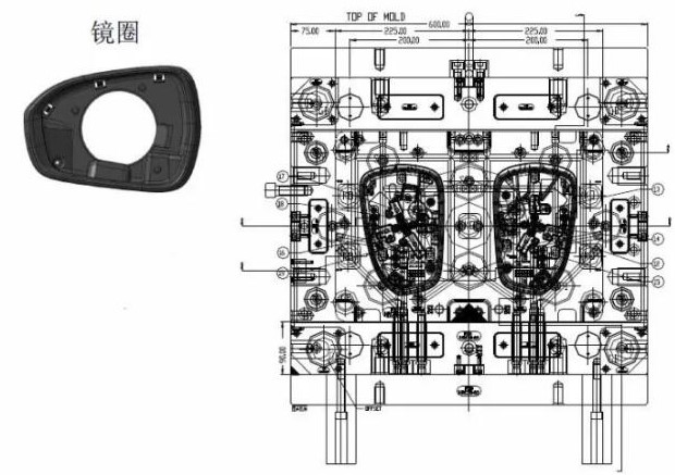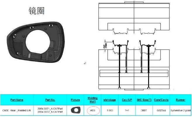 模具結構:鏡圈產品一般無結構,此車型鏡圈產品無行位斜頂結構